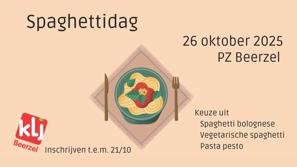 Eind oktober organiseren we onze jaarlijkse spaghettidag. Kom genieten van onze verse spaghetti bolognese, vegetarische spaghetti of pasta pesto. Heb je daarna nog een plekje over? Verwen jezelf met een zelfgemaakte tiramisu, dame blanche of een kinderijsje.